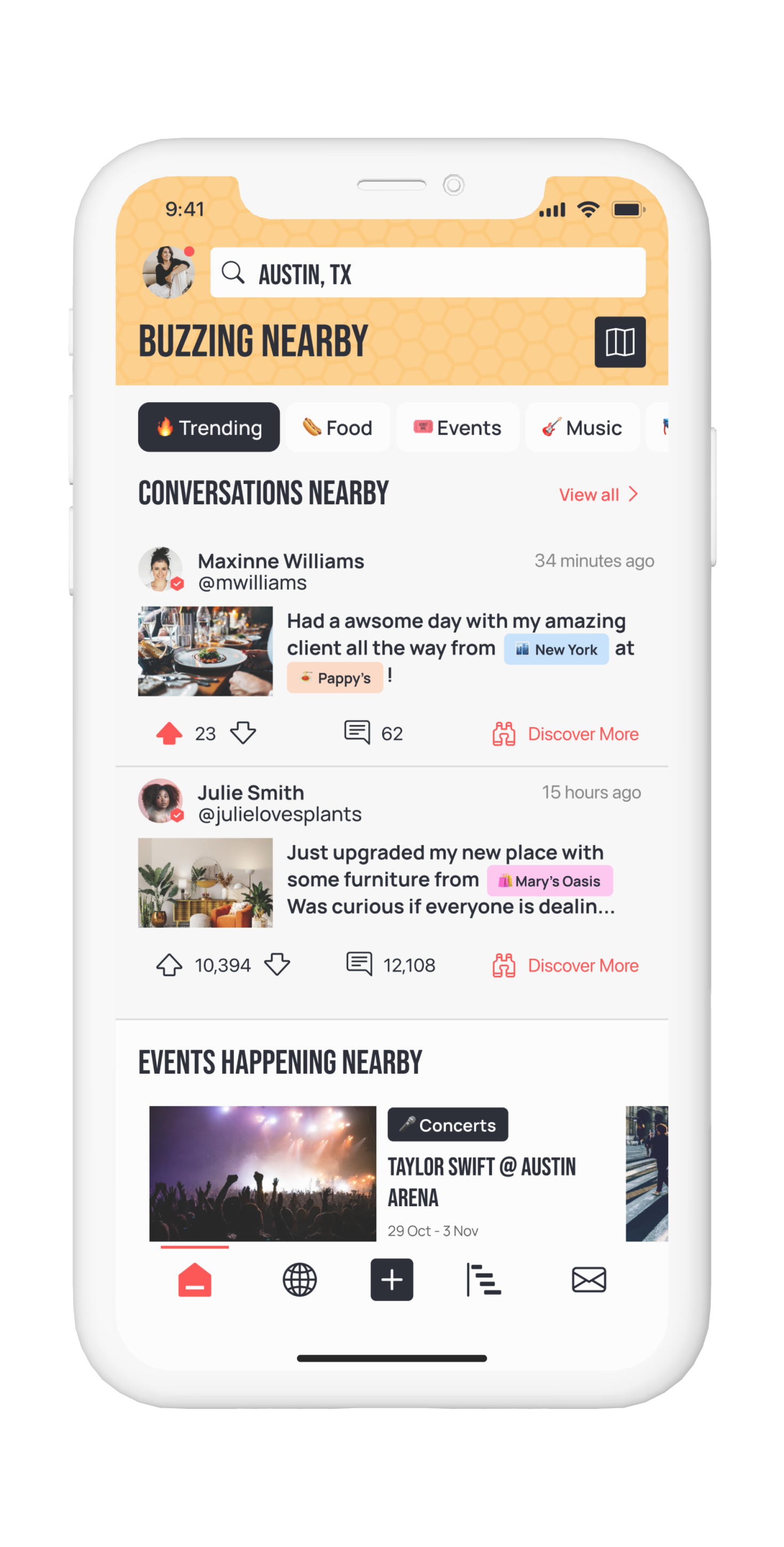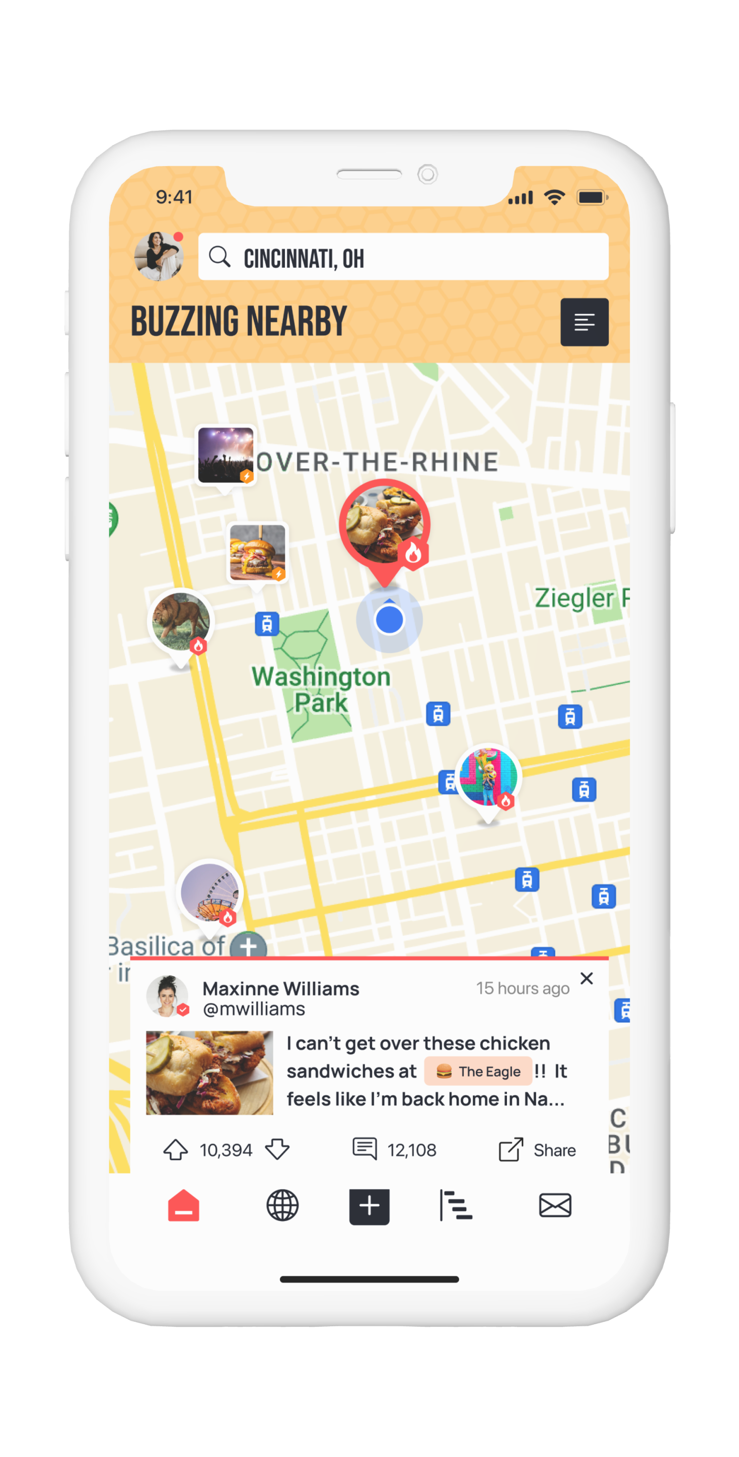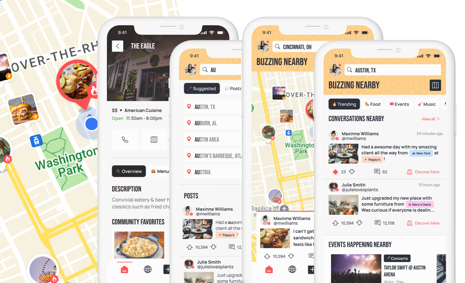 A social media platform driven entirely by location that empowers anyone to seamlessly connect with anyone in the same community, venue, or event.