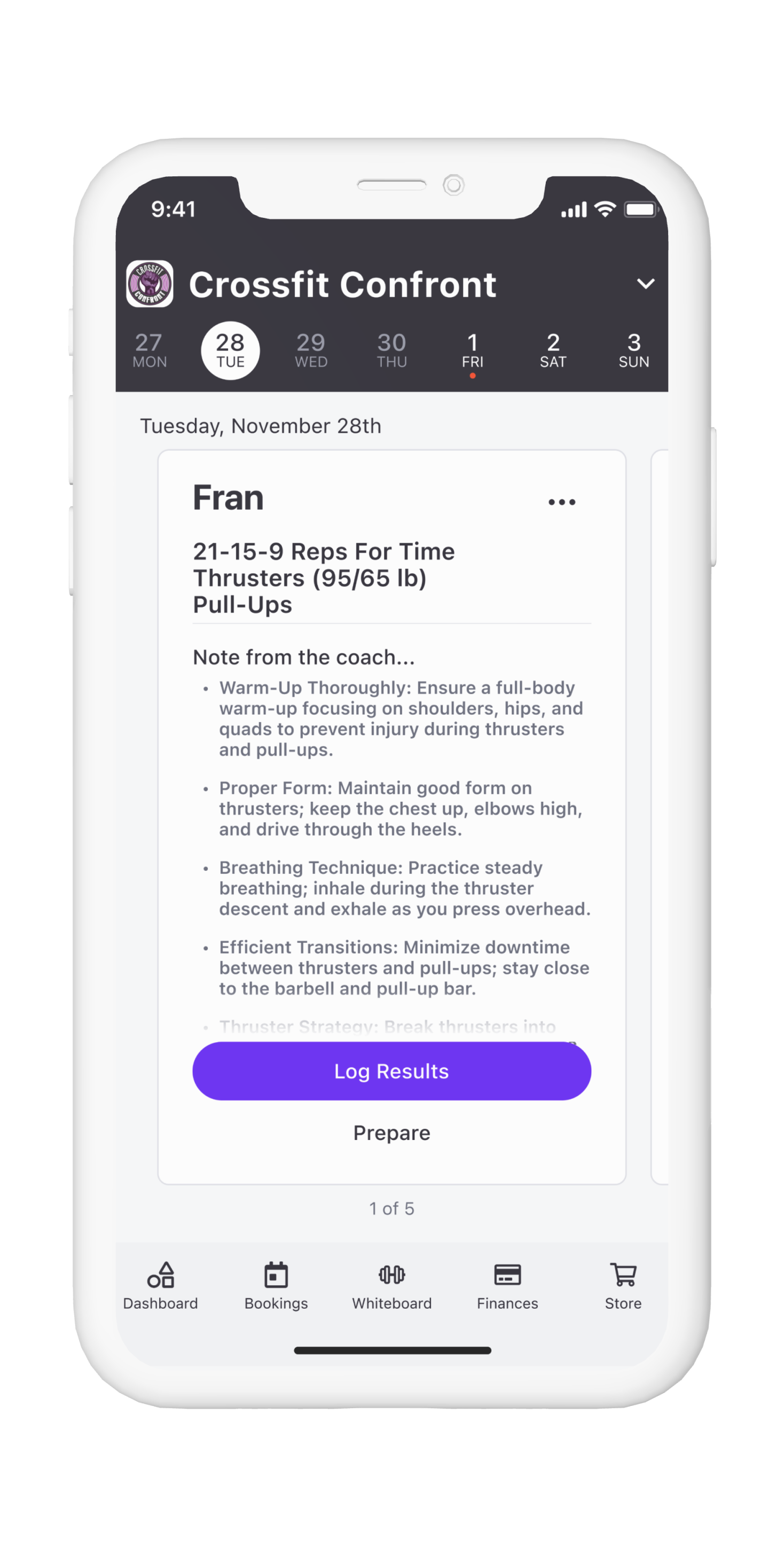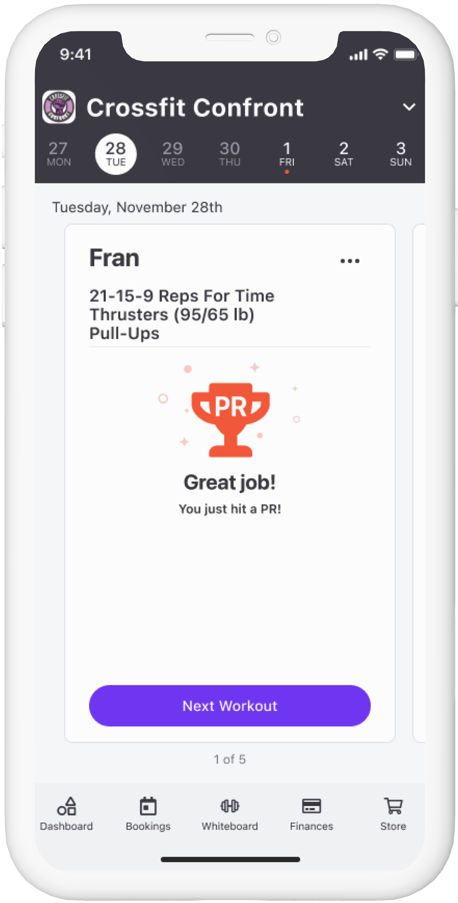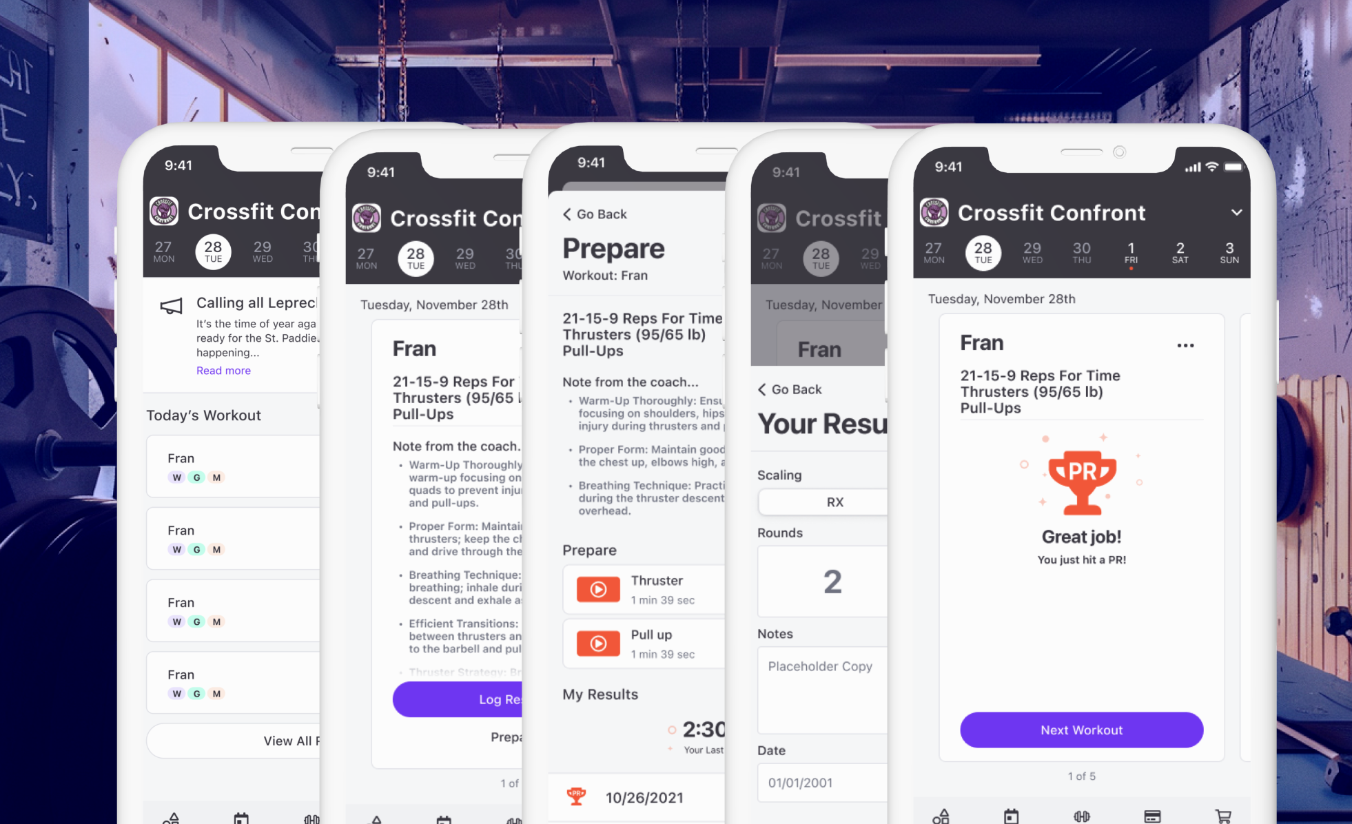 CrossFit athletes need an intuitive app to track their workouts, monitor progress, as part of a B2B2C strategy integrating Crossfit into an existing studio management platform.